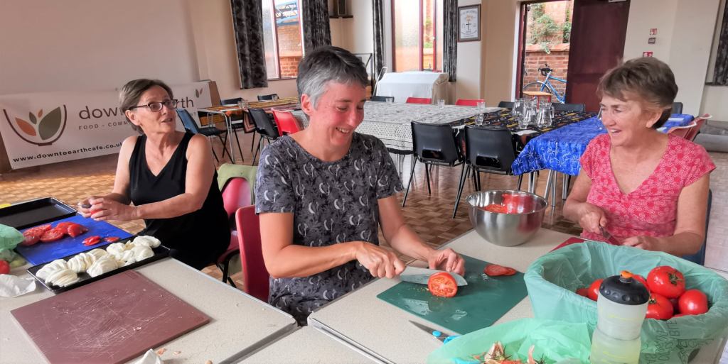At the Down to Earth community café, residents get together to ‘chop and chat’, turning surplus food that would have gone to waste into a feast for their local community. The fabulous facilitator Kate shares her ideas for ways to avoid waste in the kitchen and cut our carbon ‘food’ print through actions like buying locally and having a more plant-based diet.