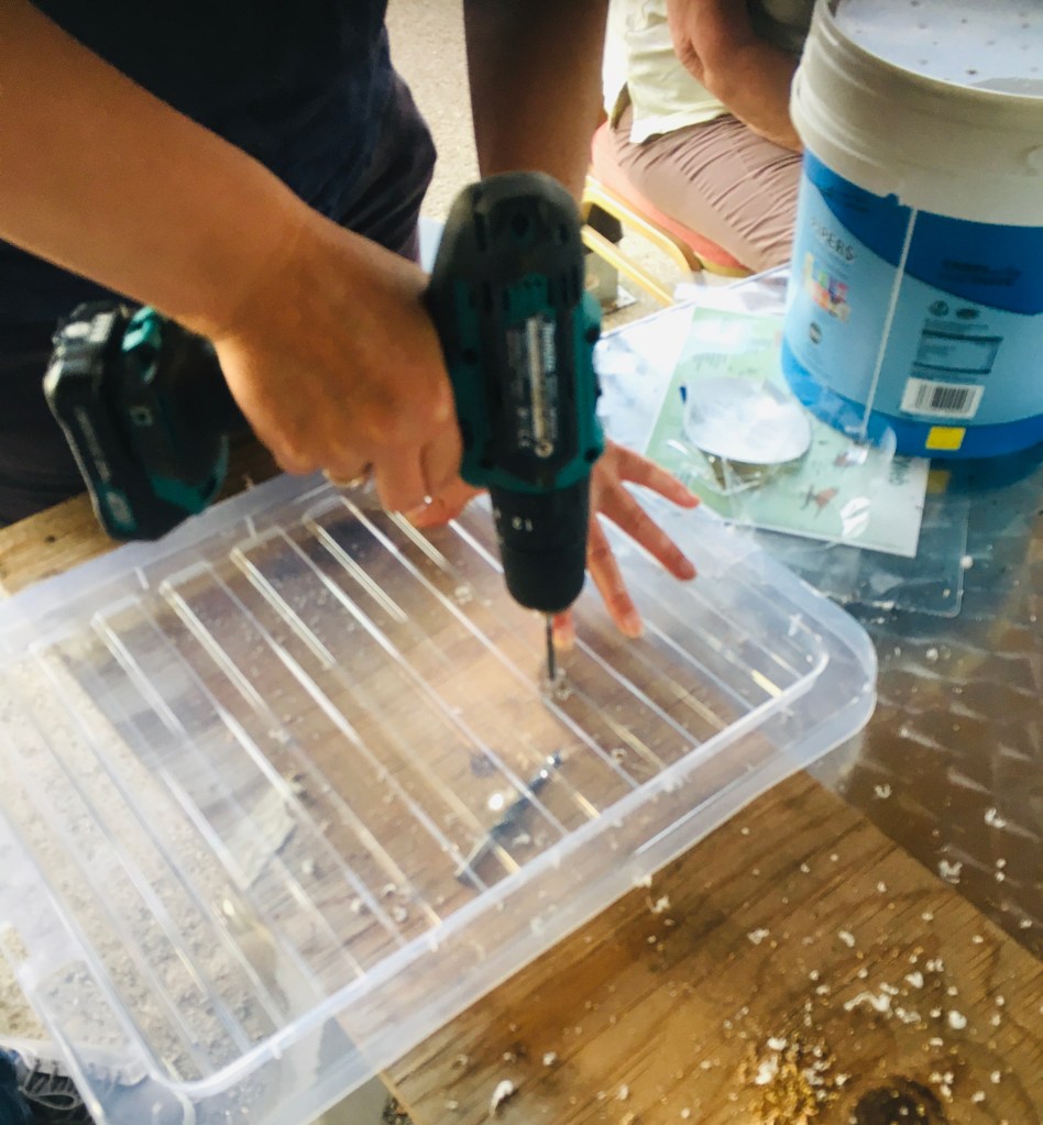 We got hold of old plastic boxes and tubs used for catering and upcycled them into worm farms. We then had a great making session with residents at Oxford City Farm.