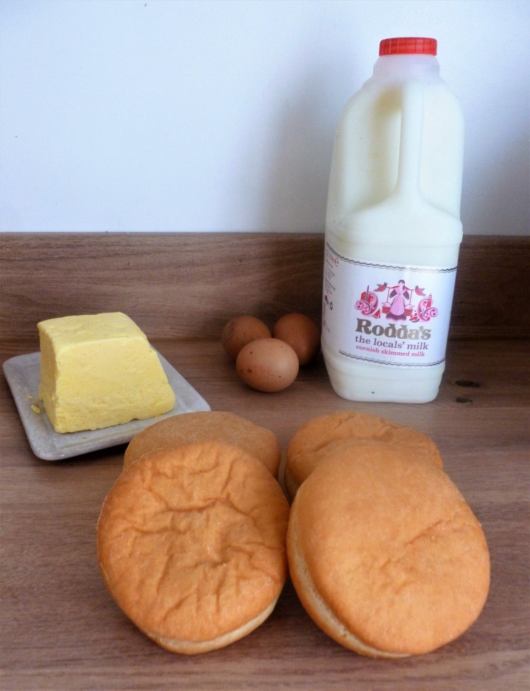 You could use any leftover or slightly stale bread type products – tea cakes, hot cross buns, raisin bread or brioche buns – they seem to always be in the reduced section lately. Croissants would also work, or how about cinnamon whirls? Mouth watering!