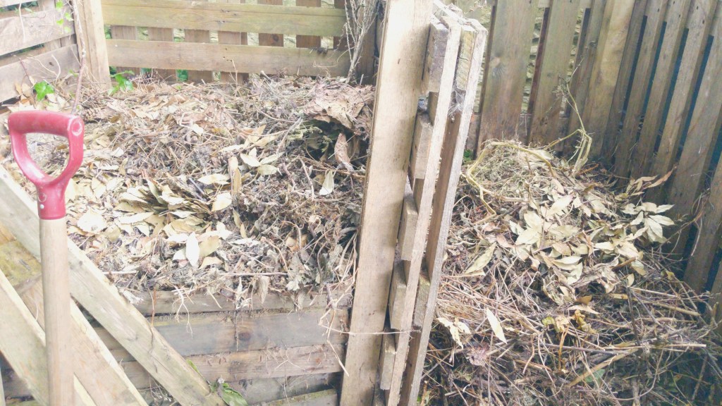 One problem at Garth Garden was that both sides of the pallet bay compost system were being added to at the same time. The benefit of a two-sided system is that you can get the next batch started whilst the first batch composts and matures.