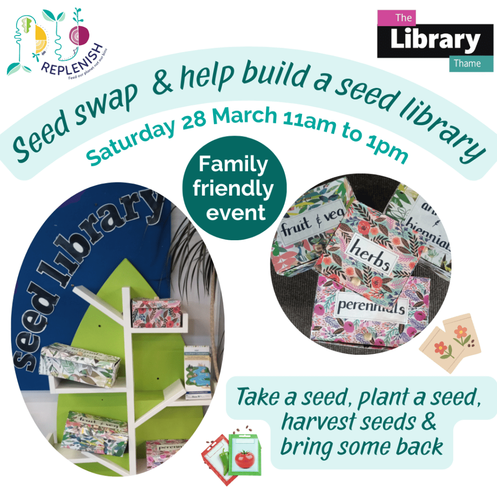 Join this family friendly event and help us decorate boxes and containers to hold the seeds. We’ll also be hosting a seed swap, so bring your spares and exchange them for something new – flowers, herbs or veg. The leftovers will start off the new seed library – bring a seed, take a seed, share seeds.